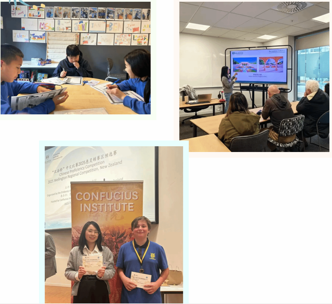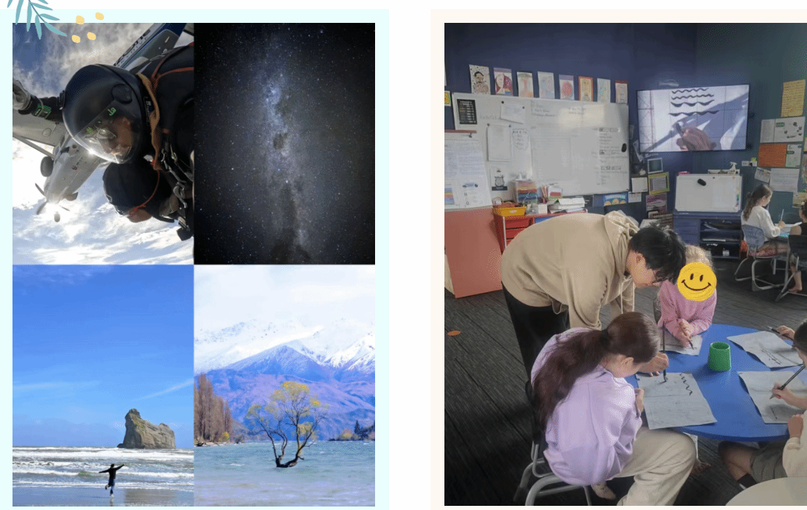 岁月如歌,转眼间,我在“长白云之乡”新西兰两所小学担任孔子学院志愿者教师的任期即将结束。这是一段充实而宝贵的旅程,它不仅仅是一份教学工作,更是我跨文化交流、专业成长与个人生活感悟的浓缩。回顾这段时光,我的心头满溢着收获与感恩。 在两所小学的教学经历,一所怀卡奈小学,一所奥塔基高中,都让我得以近距离观察并深入思考中国与新西兰基础教育的显著差异。初到时,我对于学生的高度自由度感到不适应,但很快我调整了策略,学会了用幽默、游戏和鼓励来维持秩序,而不是单纯依赖纪律。这种转变让我意识到,教育的最高境界是激发学生的内驱力。我开始尝试设计“开放式”的汉语任务,鼓励学生用简单的中文来表达自己的创意和想法,不再拘泥于标准答案。并设计诸多游戏来激发他们学习的兴趣,这比单一的知识灌输要好很多,也更有趣,如设计Kahoot游戏或是开展文化活动来激发他们学习的兴趣和热情。此外,教学中不仅涉及语言,更涉及文化。我必须清晰、耐心地解释中国的节日习俗、饮食文化,并随时处理学生可能产生的文化误解。同时举办多样活动,如在新西兰中文文化周举办舞狮活动,极大地提升了乐趣和体验。这不仅提升了我的英文表达和文化翻译能力,也磨练了我作为文化桥梁的沟通技巧。由于两所学校的学生背景和班级规模不尽相同,我必须快速切换教学模式和管理风格。
