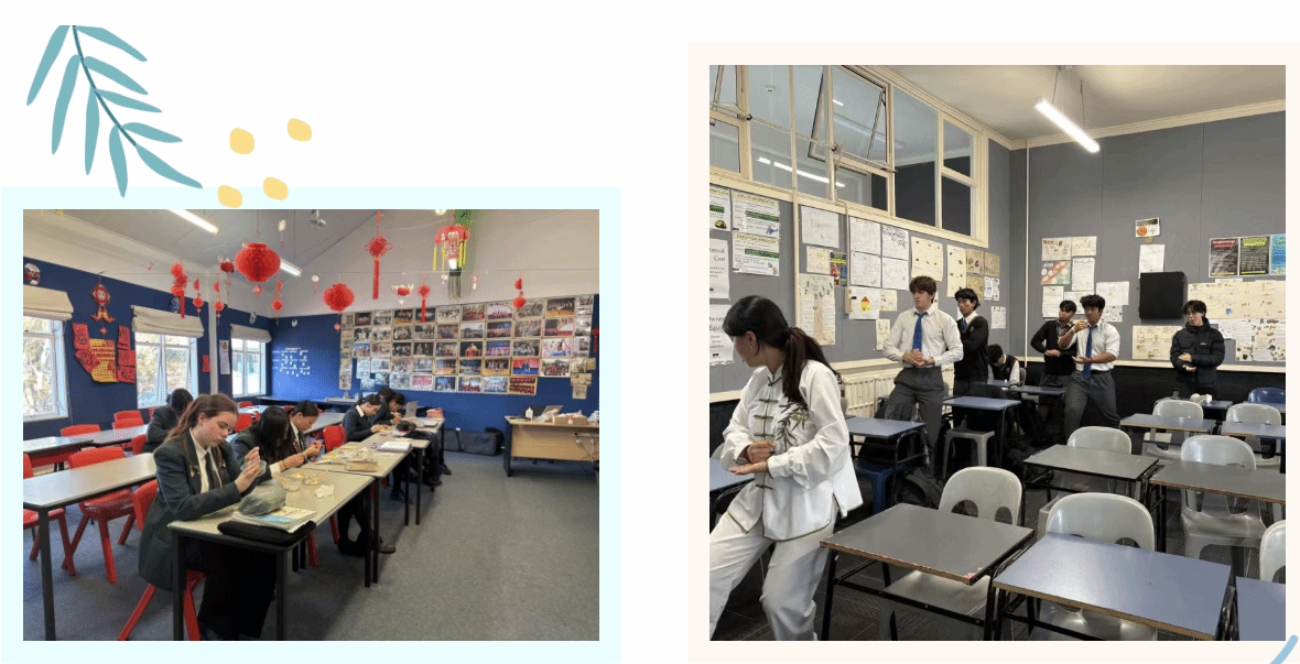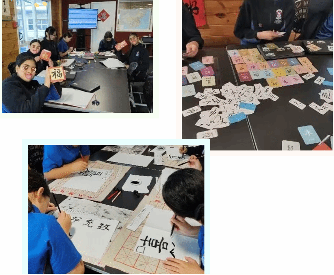 每一节课,都是一场新的冒险。面对七、八年级的零基础学生,我不再仅仅讲授拼音和字词,而是努力让中文“活”在他们的世界里。课堂上,我们用中文做游戏、唱中文歌曲、演小剧。学生扮演“小小导游”介绍新西兰,也用简单的中文描述自己的家人和兴趣。有时候,他们会因为一个声调的错误引起哄堂大笑,而笑声过后,他们却能准确地纠正刚才的发音。 语言的学习就像种树,水要一滴一滴地浇。于是我将“写字课”设计成一场跨越时空的文化之旅。从硬笔到毛笔,从古老的甲骨文到现代的整字结构,学生在一笔一划中体会汉字的演变与美感。看着他们专注地描摹“家”“友”“爱”,那些线条仿佛也在诉说他们对中文的理解——认真、纯粹,且充满生命的温度。