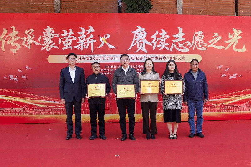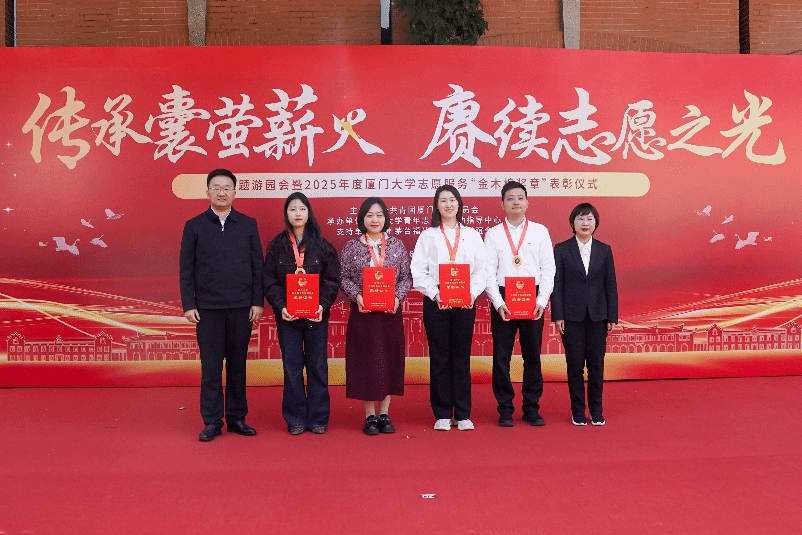为弘扬雷锋精神,落实习近平总书记关于志愿服务的重要指示批示精神,充分发挥先进典型的示范引领作用,3月12日,“传承囊萤星火,赓续志愿之光”厦门大学2025年度志愿服务“金木棉奖章”表彰仪式在三家村学生活动广场举行。我院“瀚宇之花”国际中文教育志愿者团队获“金木棉奖章集体”称号,团委书记白沚凡老师和2023级硕士研究生柴莹莹荣获“金木棉奖章个人”称号。
