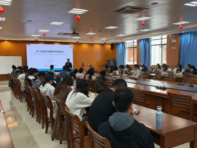 此次讲座围绕“专门用途汉语教学的特殊性”这一核心议题,张黎以五个关键问题为引导,层层深入。他首先从学理上廓清了“专门用途汉语教学”的理论基础、概念内涵和基本特征,指出专门用途语言并非仅限于专业学习或职业场景中使用的语言,而是基于学习者个性化、特定交际需求的语言,这一界定引发了在场师生对专门用途汉语教学与通用汉语教学二者关系的深入思考。