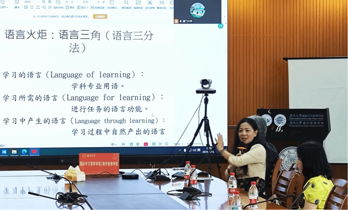 7月7日上午,国际中文教育学院/海外教育学院名家讲坛第三十七讲在翔安校区坤銮楼C104教室举办。本期名家讲坛由华文系主任朱宇教授主持,邀请到台湾师范大学杜昭玫副教授为师生们带来题为《内容与语言整合CLIL简报》的专题讲座。