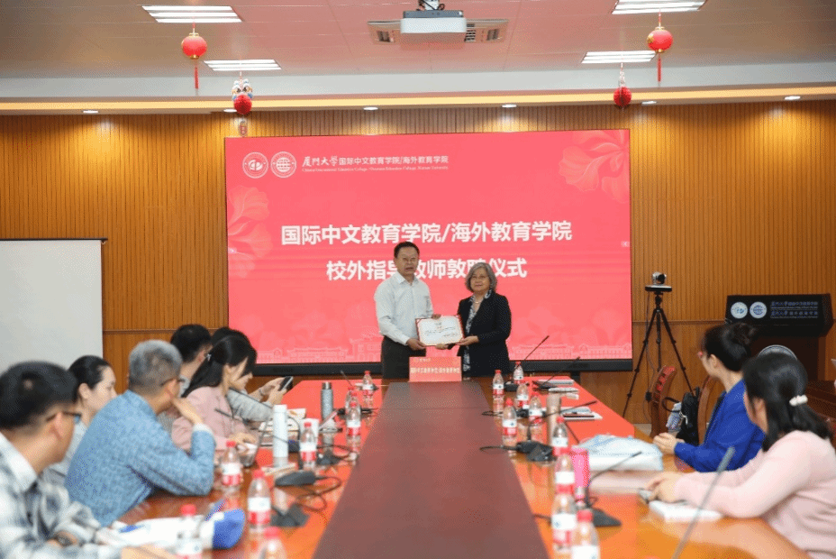 耿虎首先对施正宇的到来表示热烈欢迎,并详细介绍了其在对外汉字教学及世界汉语教育史领域的成就,并代表学院向施正宇教授颁发聘书,聘请为我院校外指导教师。