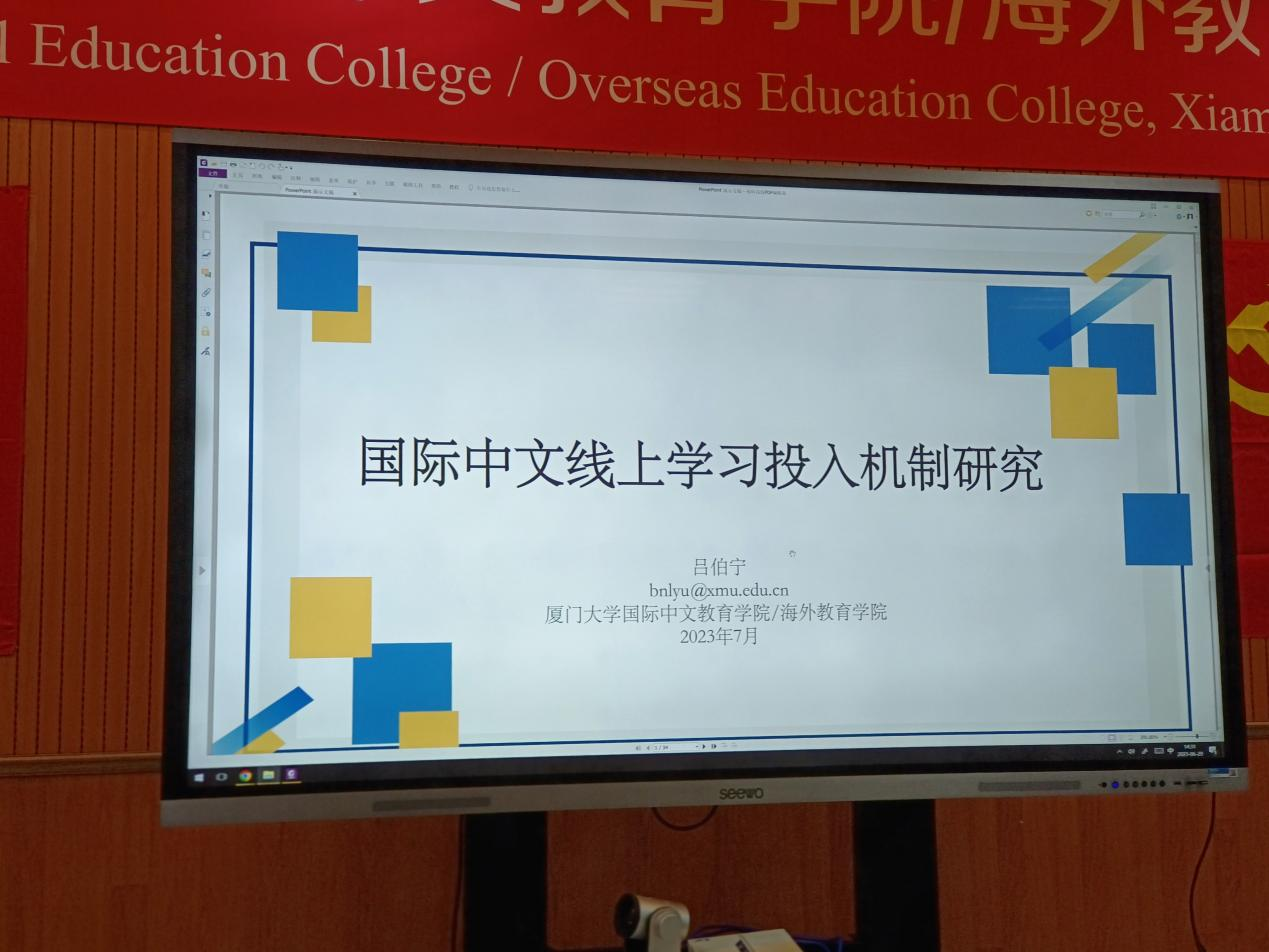 6月29日下午,国际中文教育学院/海外教育学院第268期学术沙龙在坤銮楼C104成功举办,本次沙龙主题为《国际中文线上学习投入机制研究》,由我院助理教授吕伯宁主讲。