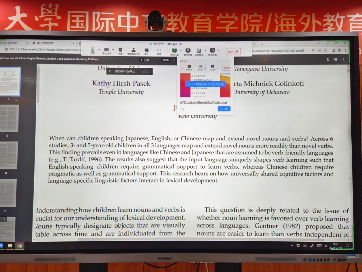 3月1日晚,国际中文教育学院/海外教育学院第259期学术沙龙在坤銮楼C104成功举办,我院副教授张姜知担任本期主讲人,主题为《论文略读与语言学研究》。