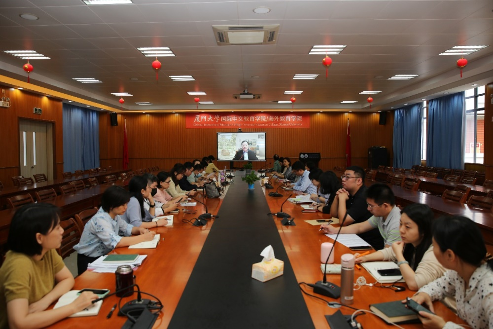 11月18日上午,厦门大学国际中文教育学院/海外教育学院名家讲坛系列讲座第十九讲暨双周政治理论学习成功举办。北京语言大学汉语国际教育研究院/华文教育研究院院长、教育部人文社科重点研究基地主任、博士生导师、厦大兼职教授吴应辉应邀在线上为学院师生做了题为“新时代国际中文教育服务强国战略八大功能与实现路径”的讲座。本次讲座由厦门大学国际中文教育学院/海外教育学院院长陈志伟主持,院党政班子成员及全体师生一百多人以线上线下结合的方式出席了讲座。