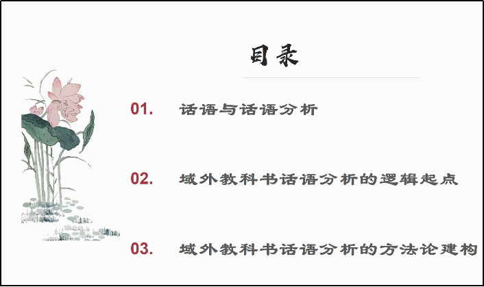 首先,张灵芝分别对关键词“域外”、“教科书”和“话语分析”进行了解释,介绍了话语分析方法论的哲学基础——建构主义认识论;接着,通过大量的数据和实例为大家阐释了教科书及教科书分析的重要性,并讲解了域外教科书话语分析的六个逻辑起点。