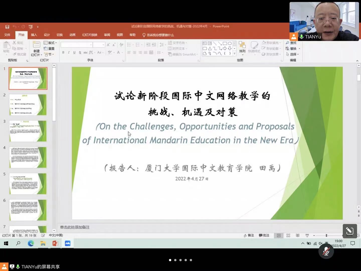 4月27日晚7点厦门大学国际中文教育学院/海外教育学院田禹老师为我们带来了题为《试论新阶段国际中文网络教学的挑战、机遇及对策》的主题沙龙。受疫情影响,本次沙龙通过腾讯会议平台云上开讲。
