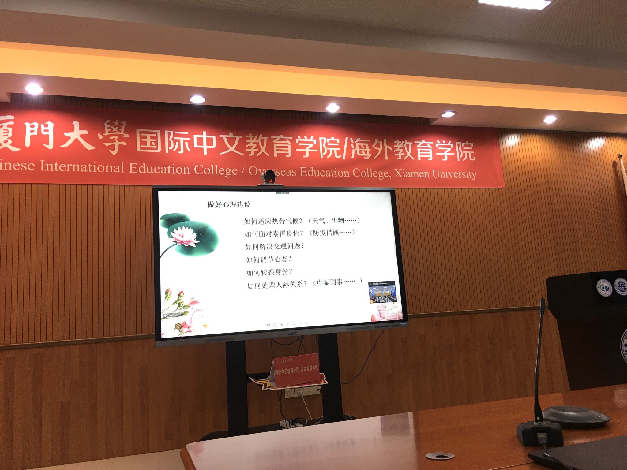 最后,马晨同学为大家分享了她在泰国生活的点点滴滴和赴泰国孔院任教的一些小建议。比如女生要准备一些过膝裙和带领衬衣、适当地准备一些防疫物资、在泰国不要随意触碰人的头部等等。马晨同学说希望准备去往泰国孔子学院支教的学弟学妹们可以做好心理建设,比如该如何适应热带气候、如何面对泰国疫情、如何调节心态、如何转换身份等等。