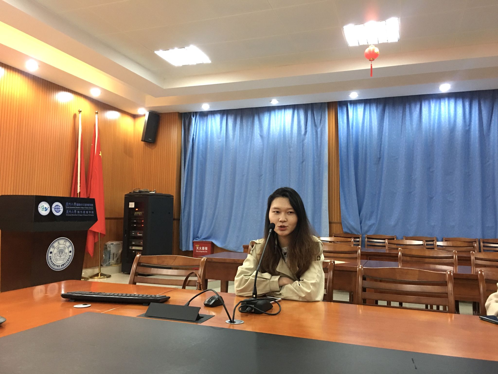 马晨同学从志愿者选拔、泰国皇太后大学孔子学院介绍、孔院工作、教学活动、泰国生活等方面展开介绍。在提到孔子学院的工作时,马晨同学说,孔子学院的工作内容比较多,除教学外,志愿者还需负责行政、网络练习系统运营、公众号新闻、新媒体运营、HSK监考、会议主持、比赛辅导、编写书籍等工作。这些工作虽然繁多,但让她快速成长,收获颇丰。