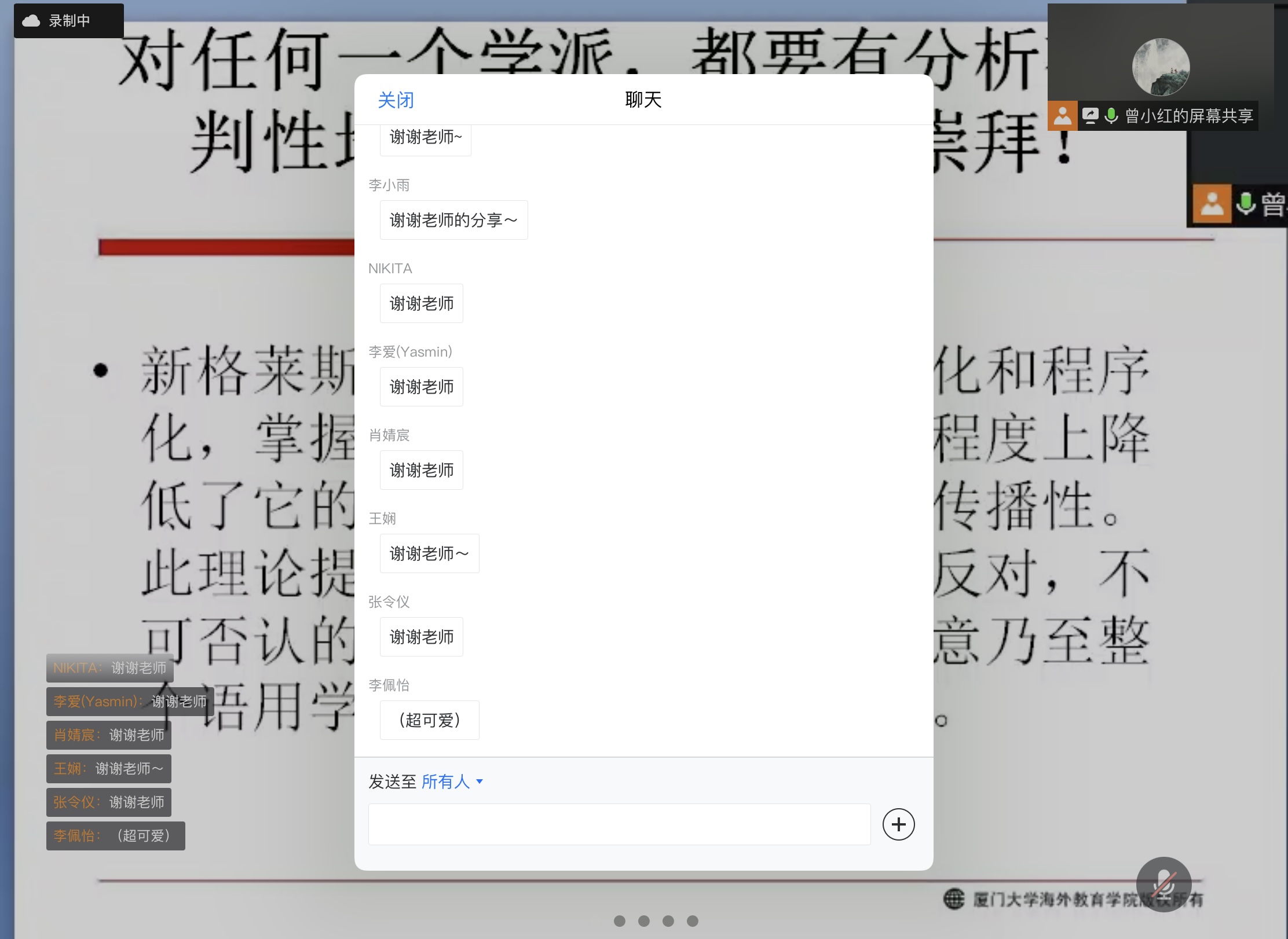 本次学术沙龙在同学们的感谢弹幕中圆满结束。(图/文付艺伟)