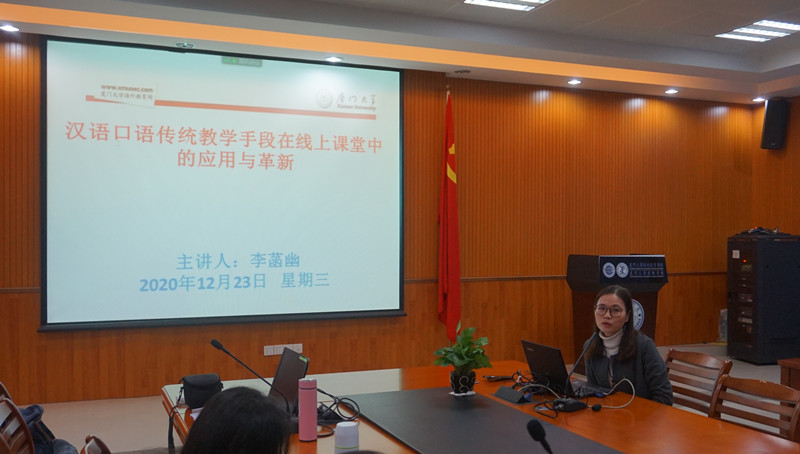 12月23日晚,第224期学术沙龙在国际中文教育学院/海外教育学院C104会议室成功举办。由于部分国际学生尚未返校,本次沙龙借助“腾讯会议”在线平台,线上线下同步进行。这次沙龙我们邀请到李菡幽副教授,做主题为《汉语口语传统教学模式在线上课堂中的应用和革新》的沙龙讲座。