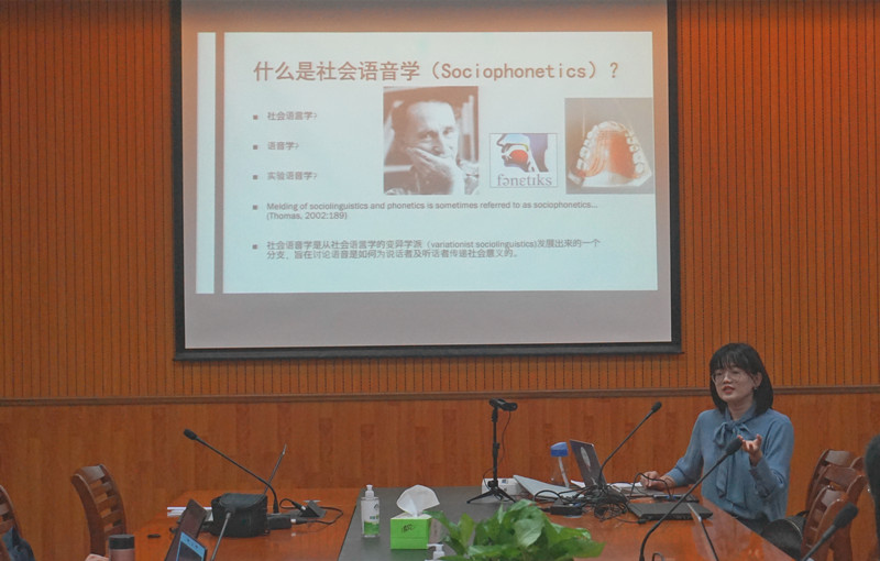 讲座一开始,王老师便向我们介绍了“社会语音学”这一概念。实际上“社会语音学”就是社会语言学与语音学的结合,并以语音学为核心。“社会语音学”是从社会语言学的变异学派发展出来的一个分支,旨在讨论语音是如何为说话者以及听话者传递社会意义的。或许我们对这一概念并不熟悉,但是王老师指出,其实生活中处处都有社会语音学的痕迹。例如,我们在日常生活中能够根据说话者的口音基本判断出说话人大概会来自什么地区。除此之外,我们的口音有时候也会因为工作环境、学习环境、生活环境等社会因素的变化而发生相应的变化。