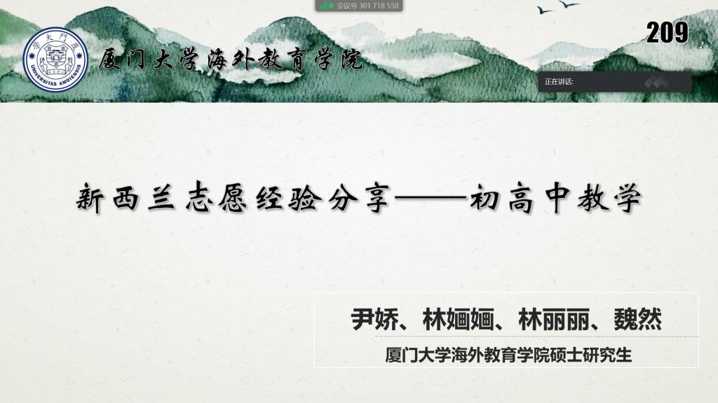 4月22日晚,第209期学术沙龙讲座借助“腾讯会议”软件,以线上形式成功举办。这次讲座邀请到了四位从新西兰归国的汉语教师志愿者,进行了一次中学教学经验分享会。